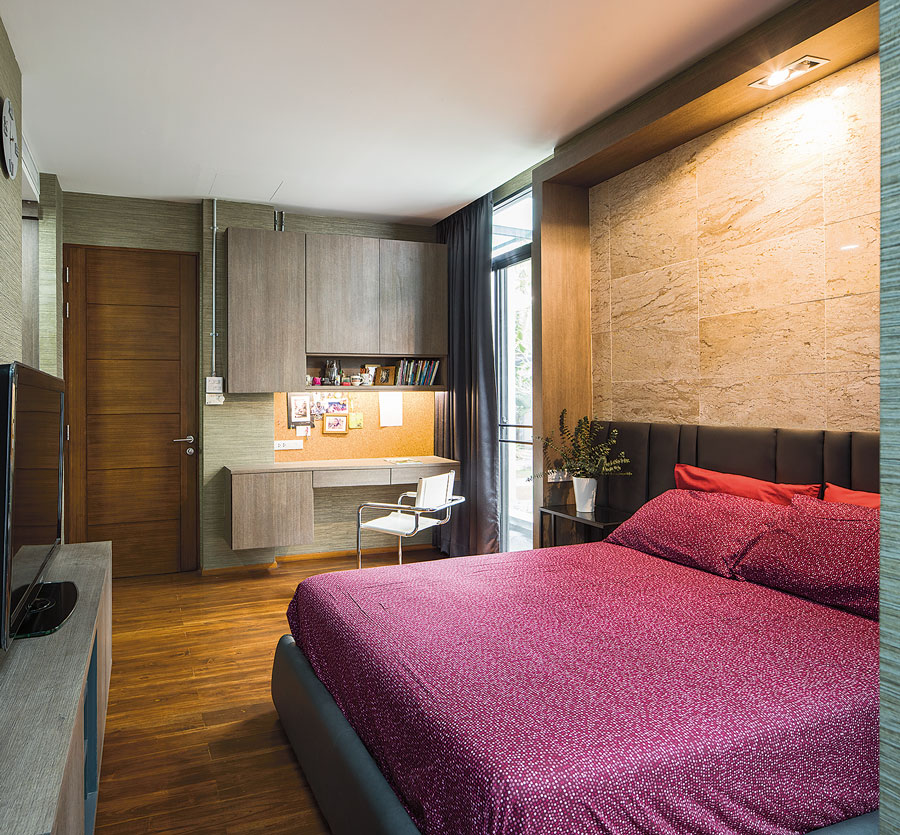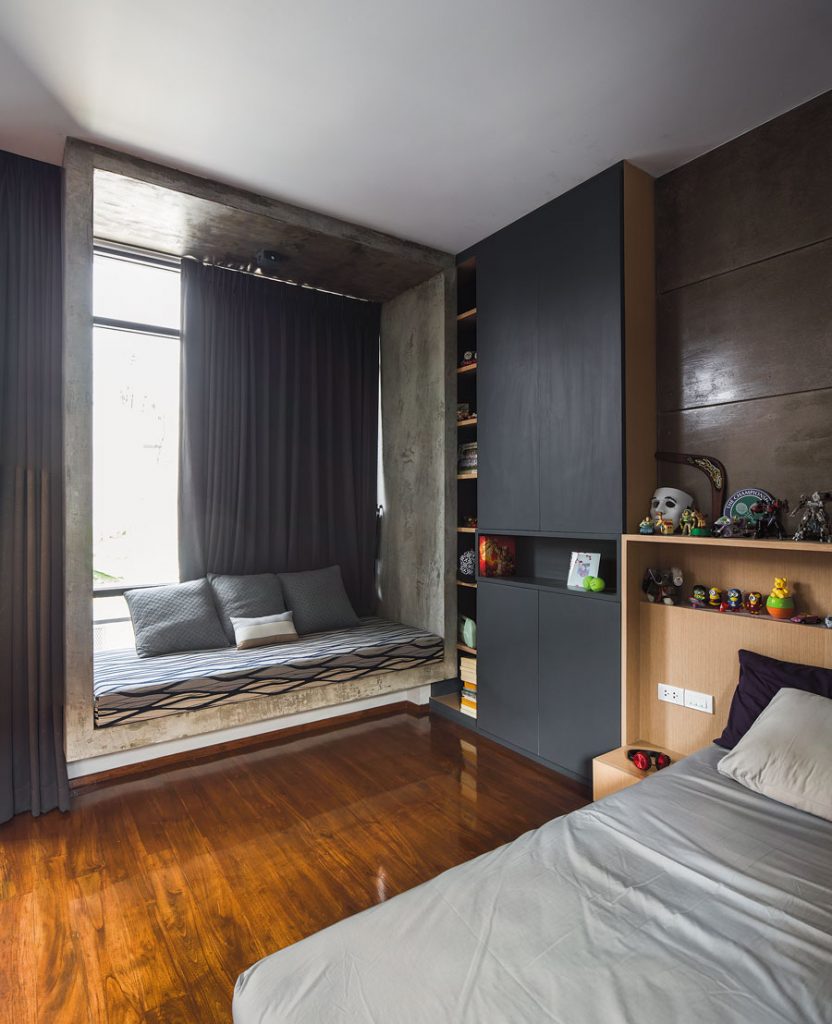 “ผมตั้งใจวางตำแหน่งห้องนอนลูกชายให้ขวางบ้าน มีหน้าต่างโปร่งที่มองเห็นได้ทั้งหน้าและหลังบ้านเพื่อให้เขาเป็นผู้ดูแลความปลอดภัยของบ้านไปในตัว เพราะสามารถมองเห็นได้รอบบ้าน โดยติดตั้งระบบไฟส่องสว่างที่ควบคุมได้จากห้องเขาเลย”