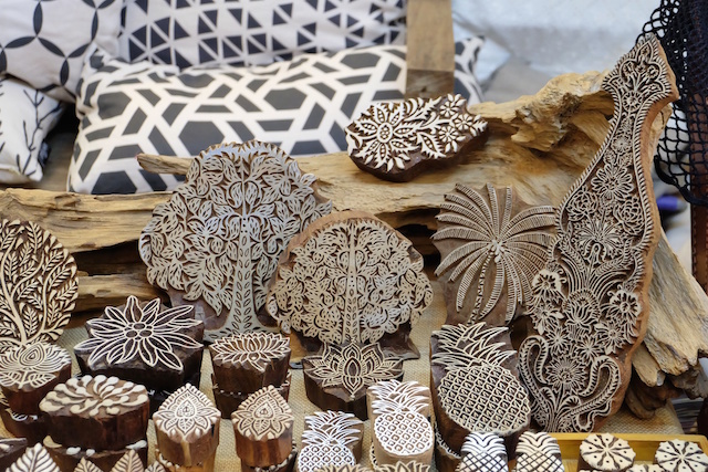 ส่วนสินค้าที่เป็นจุดเด่นเห็นแล้วต้องสะดุดตาก็คือ Wood Block เจ้าแท่นพิมพ์ไม้จากอินเดีย ที่ใครเห็นก็ต้องให้ความสนใจ
