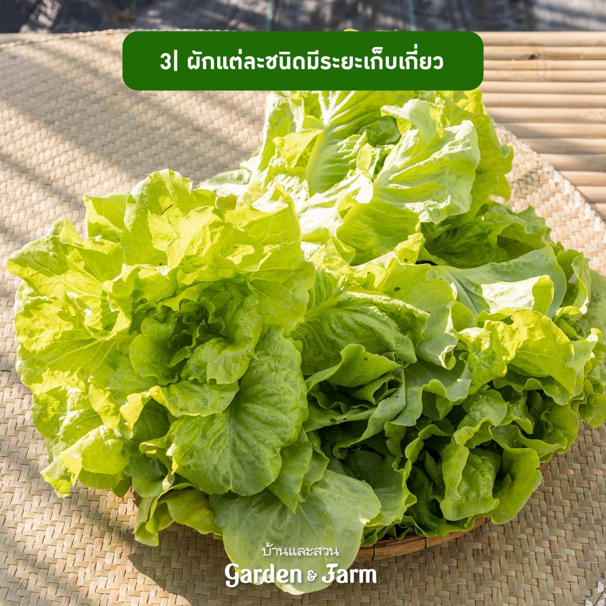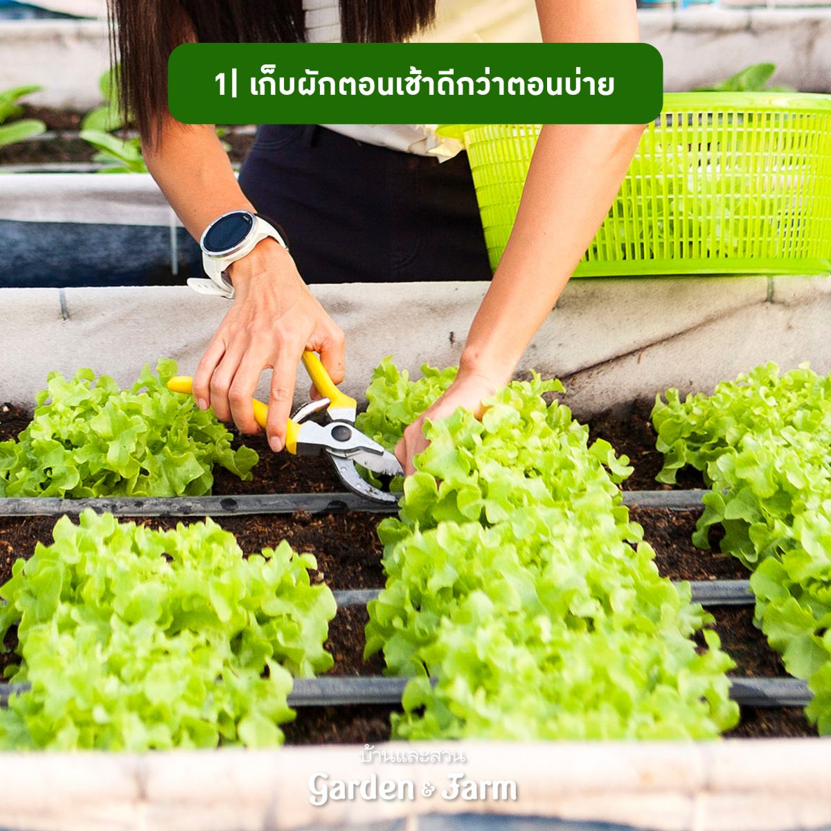 1 ควรเก็บผักตอนเช้า ผักจะกรอบอร่อยและเก็บรักษาไว้ได้นานกว่าผักที่เก็บตอนบ่าย ด้วยตอนเช้าอากาศยังไม่ร้อนอบอ้าว ผักคายน้ำน้อยทำให้รักษาความสดได้นาน