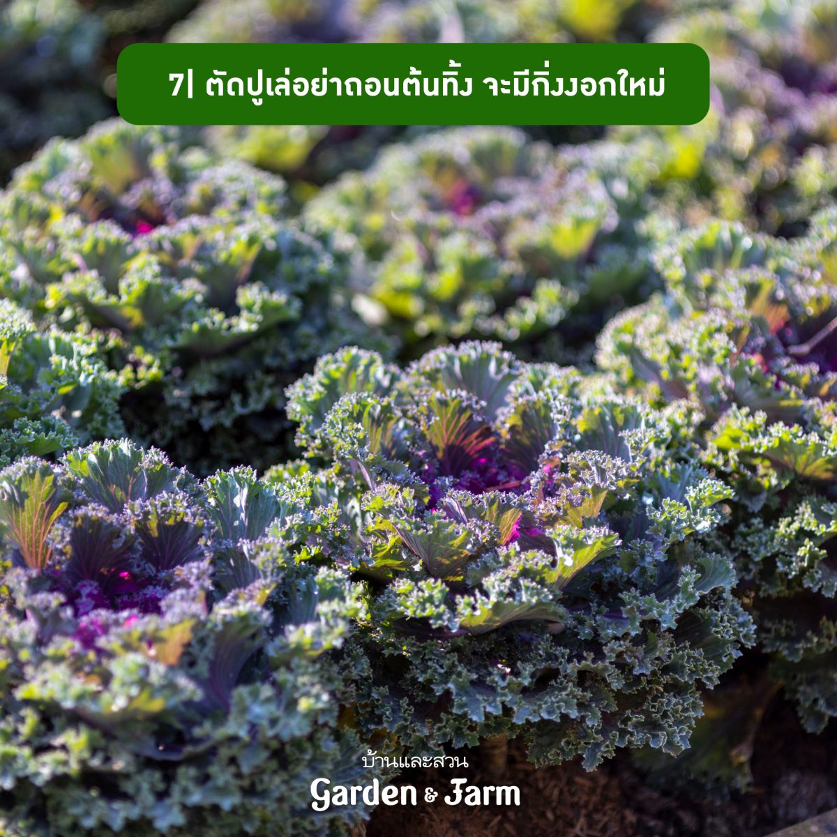 7 ปูเล่ พืชผักที่ใช้ปลูกประดับสวนได้ด้วย การเก็บปูเล่นั้นเมื่อต้นโตให้ตัดใบล่างที่มีอายุ 2 เดือน มาประกอบอาหารแทนคะน้าได้ หรือหากตัดต้นไปแล้วไม่จําเป็นต้องถอนทิ้งทันที ปูเล่จะมีต้นเล็กๆ งอกขึ้นมาใหม่จากรอยตัดให้เราเด็ดไปชําต่อได้