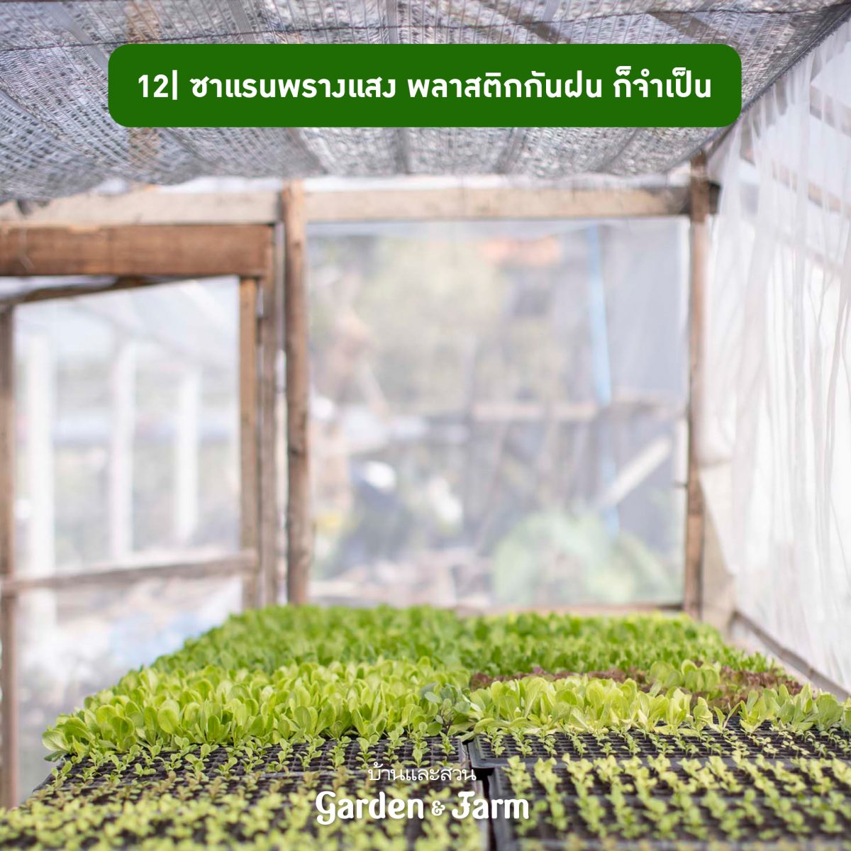 12 แม้ว่าผักกินใบจะชอบแสงแดดเต็มวันก็จริง แต่หากคุณปลูกในเมืองที่แวดล้อมด้วยพื้นแข็งหรือตึก ซึ่งจะสะสมความร้อนและคายออกมาให้ต้นไม้ได้มาก โดยเฉพาะช่วงฤดูร้อนด้วยแล้ว จึงควรกางซาแรนพรางแสงเป็นระยะ แต่ระวังอย่าให้ร่มเกินไป และอย่าลืมคลุมพลาสติกในช่วงหน้าฝน ป้องกันไม่ให้ผักได้รับน้ำมาเกินไป