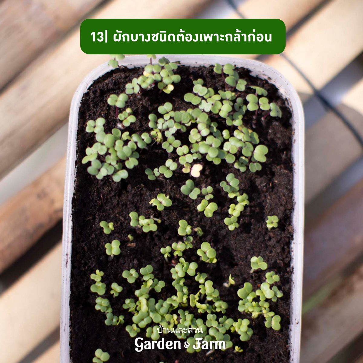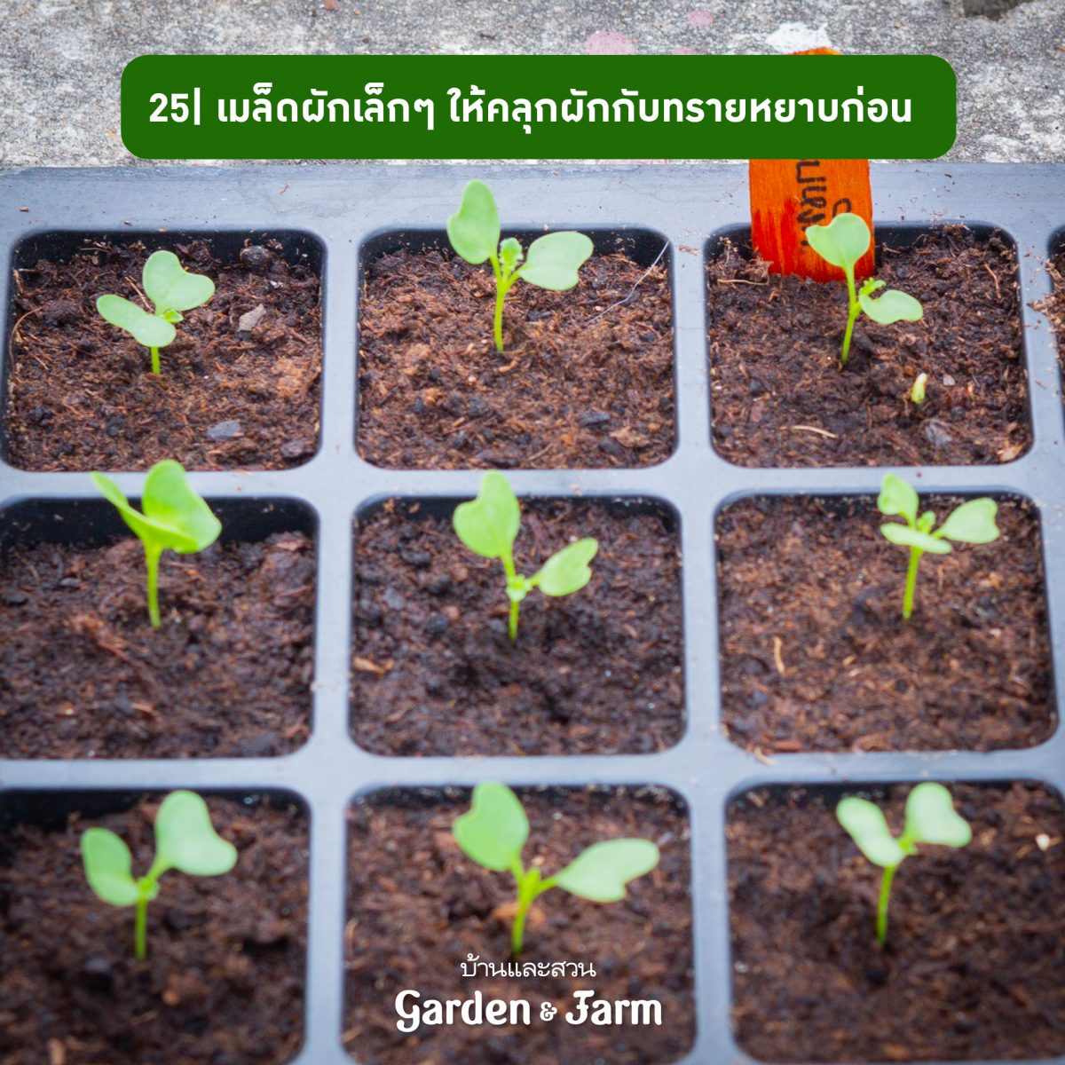25 สำหรับเมล็ดผักที่มีขนาดเล็กมาก ควรนำเมล็ดมาผสมกับทรายหยาบ แล้วค่อยโรยลงกระบะเพาะ จะช่วยให้ต้นกล้าไม่เบียดกัน