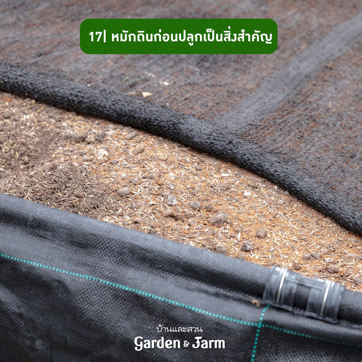 17 แปลงผักที่นี่เป็นดินใหม่ที่ยังไม่มีธาตุอาหารและจุลินทรีย์ในดิน หรือที่เรียกว่า “ดินไม่มีชีวิต” แนะนําให้เริ่มปรุงดินโดยใช้อินทรีย์วัตถุ ปุ๋ยคอก ดิน และจุลินทรีย์ รดน้ำทิ้งไว้ 30 วัน เมื่อวัสดุปลูกย่อยสลายได้ดินปลูกที่ร่วนซุยแล้วจึงนำมาใช้ปลูกผักได้