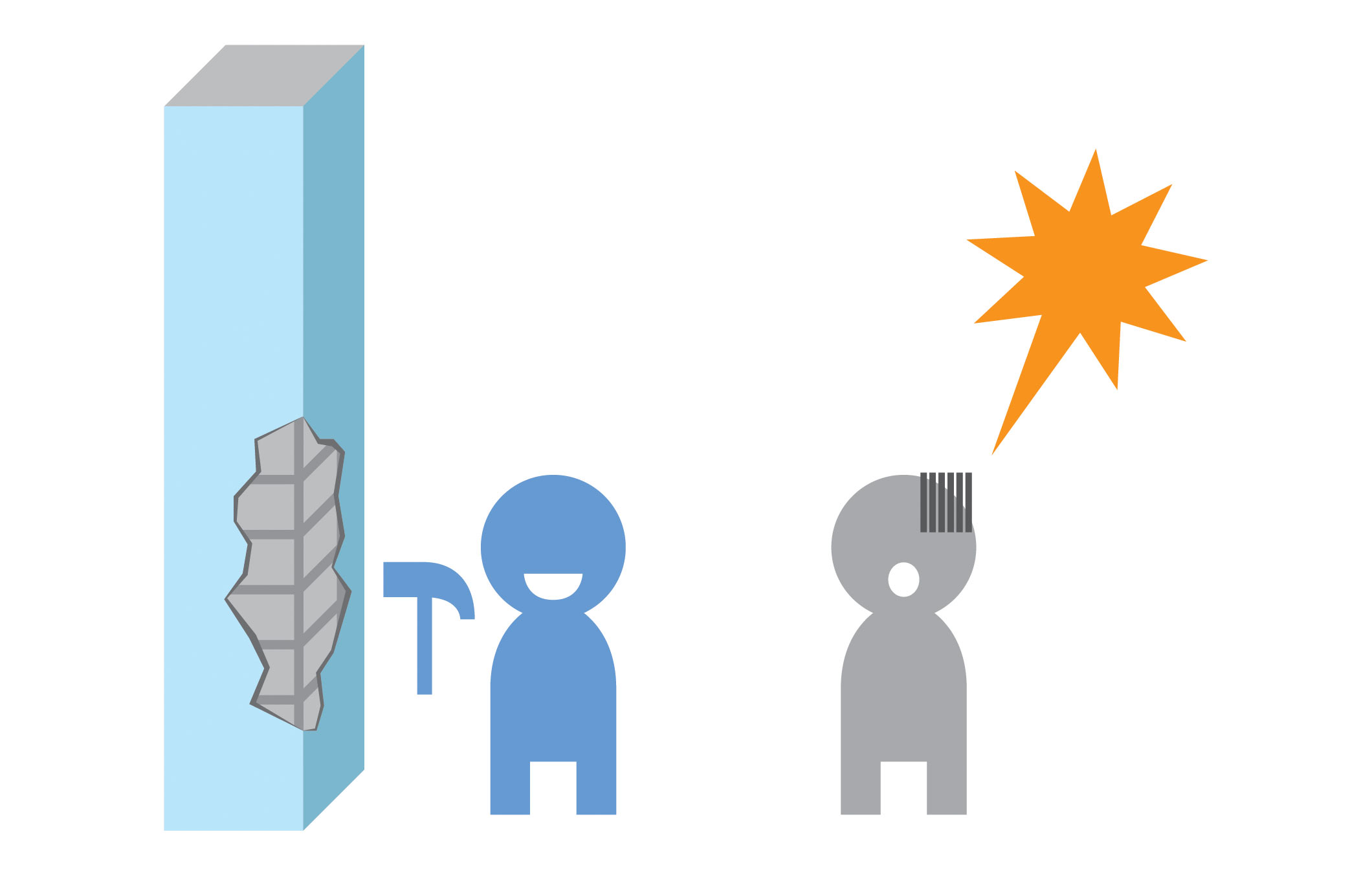 2. เสาระเบิดคานร้าว เมื่อชั้นสอง (หรือชั้นที่อยู่ด้านบน) มีน้ำหนักมากเกินกว่าที่เสาจะรับได้ เสาก็จะเกิดอาการแตกระเบิดออก โดยมีอาการร้าวนำมาก่อน แก้ปัญหาที่ต้นเหตุได้โดยระมัดระวังน้ำหนักที่จะเกิดขึ้นที่ชั้นบนในระหว่างต่อเติม เลือกใช้วัสดุน้ำหนักเบา แต่ถ้าจำเป็นจริงๆ ก็ให้หุ้มเสาหรือพอกเสาด้วยคอนกรีตเสริมเหล็ก แผ่นเหล็ก หรือแผ่นคาร์บอนไฟเบอร์ก็ได้ แล้วแต่สะดวก